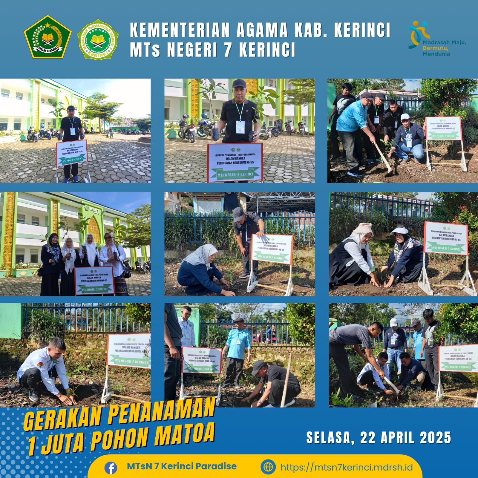 Dalam rangka memperingati Hari Bumi, MTsN 7 Kerinci ikut berpatisipasi dalam kegiatan aksi tanam pohon serentak di halaman Madrasah.