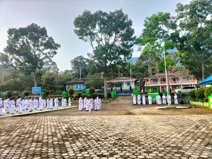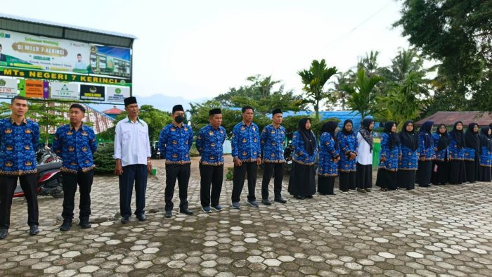 Kerinci (MTsN 7 Kerinci) - MTs Negeri 7 Kerinci melaksanakan upacara bendera dalam rangka memperingati Hari Kesadaran Nasional yang digelar di halaman madrasah, pada hari ini. Upacara berlangsung dengan khidmat dan tertib serta diikuti oleh seluruh pendidik, tenaga kependidikan, dan peserta didik.